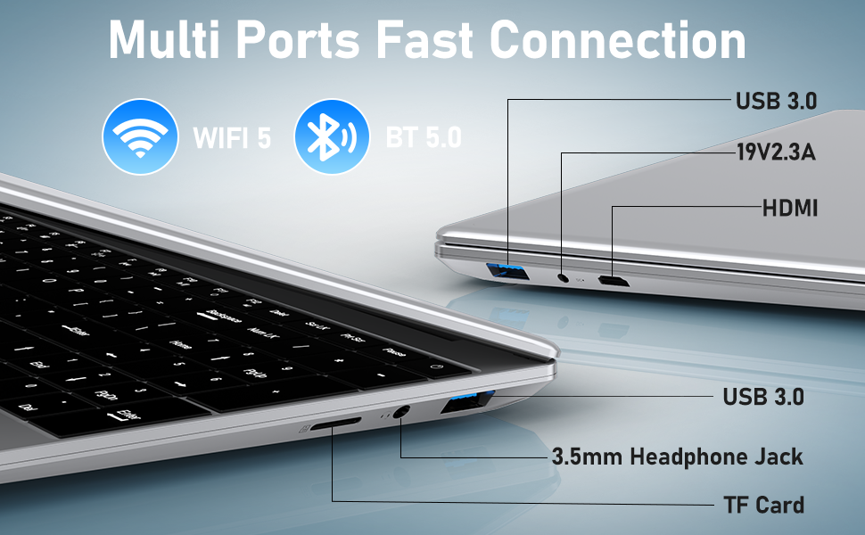 - 【Always Connected】Plug in or go wireless with ease. Connect to monitors, transfer files, or use peripherals through a full set of ports (USB 3.0, Mini HDMI, TF Card), plus fast Wi-Fi 5 and Bluetooth 5.0.