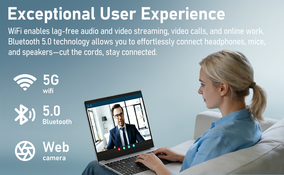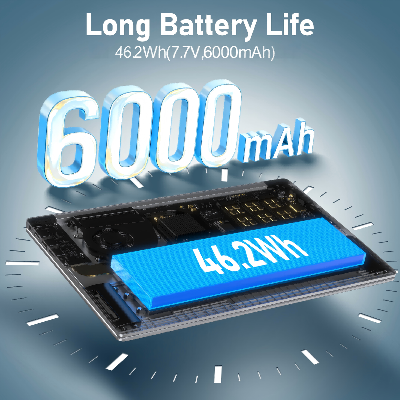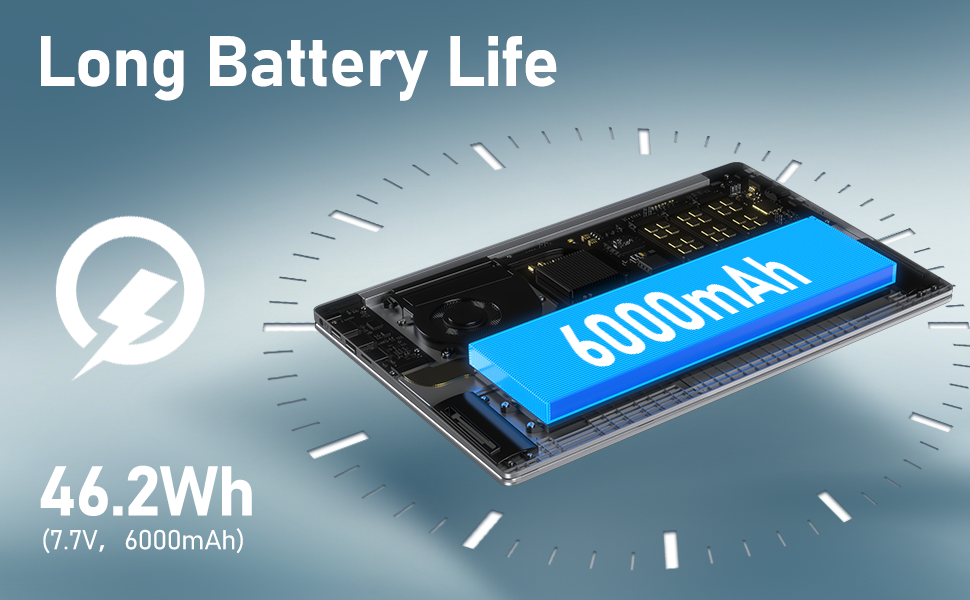 - 【PORTABLE ALL-DAY COMPANION】 Weighing only 3.5 lbs and 0.8 inches thin, this laptop is built for mobility. Its long-lasting 6000mAh battery supports up to 6 hours of offline use, keeping you productive from morning to night.