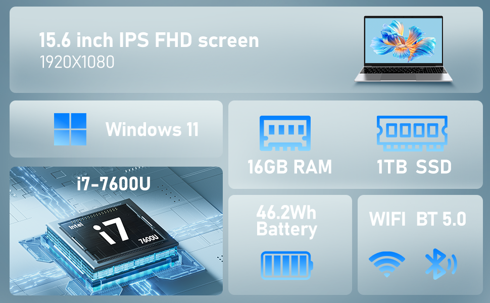 - 【VIBRANT 15.6-INCH DISPLAY】 Enjoy a visually stunning experience on the 15.6" Full HD IPS display, with 1920x1080 resolution, 90% screen-to-body ratio, and low blue light technology for comfortable viewing during long sessions.